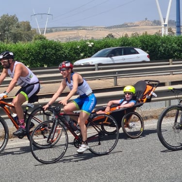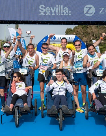 Carros de Fuego was born because Maria Pajaro and Luis Gomez ran with their daughter Casilda (who has a syndrome associated with an alteration in the HNRNPH2 gene) in popular races, half marathons and marathons in Seville. Along with Victoria Abolafio (Pediatric Physiotherapist), they came to the conclusion that many children with Functional Diversity could also benefit from participating in these sporting events.